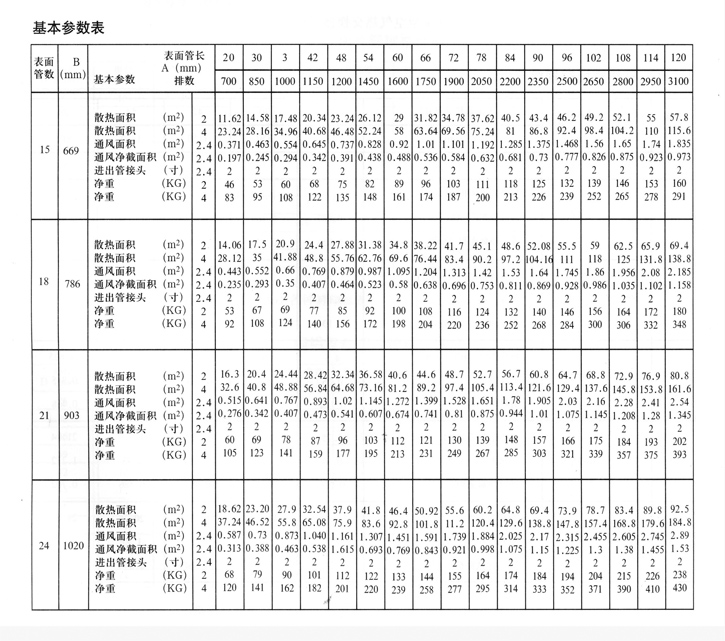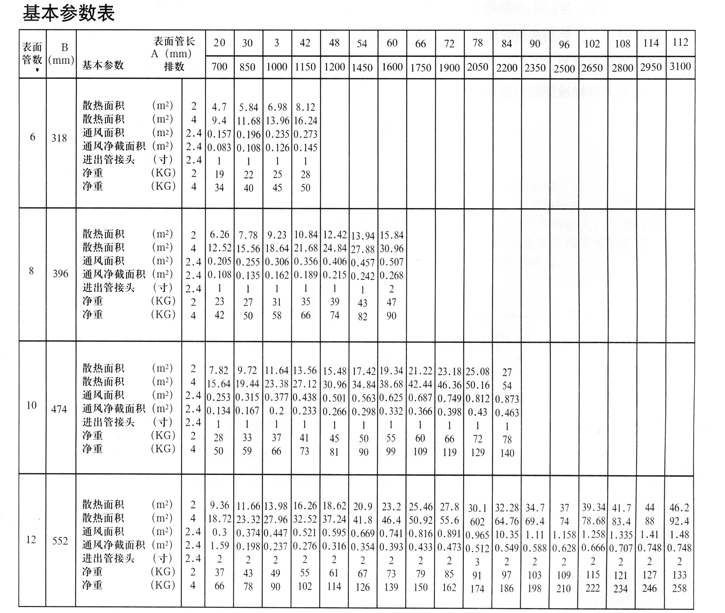 如采用四排,表面管數(shù)為10,管長為42英寸時,則為GLⅡ-4-10-42。